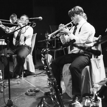 В составе квартета – лидер ансамбля Moscow Ragtime Band, трубач, вокалист и шоумен Константин Гевондян, кларнетист и саксофонист Игорь Тертычный, пианист Григорий Паламарчук и барабанщик Игорь Ямпольский.