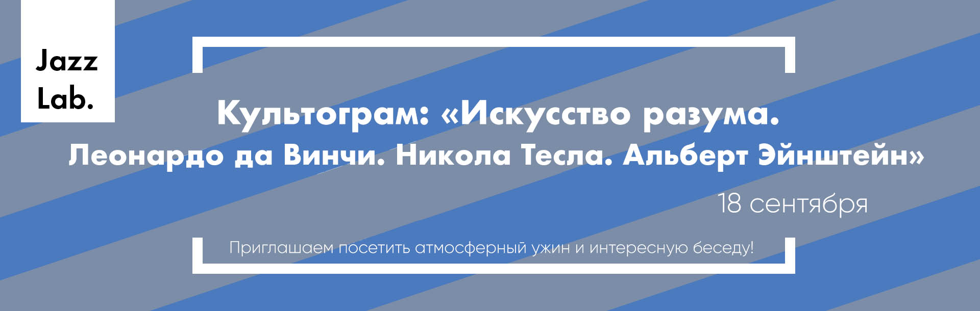 Приглашаем вас 18 сентября в 19:00 на интеллектуальный ужин от проекта Культограм: «Искусство разума. Леонардо да Винчи. Никола Тесла. Альберт Эйнштейн».