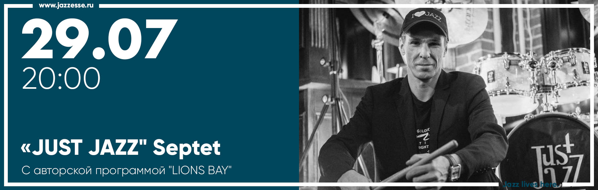 «JUST JAZZ" Septet барабанщика, композитора Вячеслава Великого. Динамичный многопрофильный джазовый коллектив с авторской программой "LIONS BAY" (Львиная бухта). Огонь и исполнительское мастерство музыкантов не оставят равнодушным даже самого неподготовленного слушателя.
