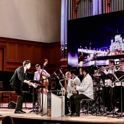Бенд-лидер оркестра – Сергей Богданов, баритон-саксофонист, аранжировщик, композитор, педагог, участник российских и международных фестивалей, джазовых форумов, один из создателей биг-бэнда “Jazz Philharmonic Orchestra”, руководитель Mussorgsky Jazz Orchestra (Санкт-Петербург), активный участник международной джазовой сцены.